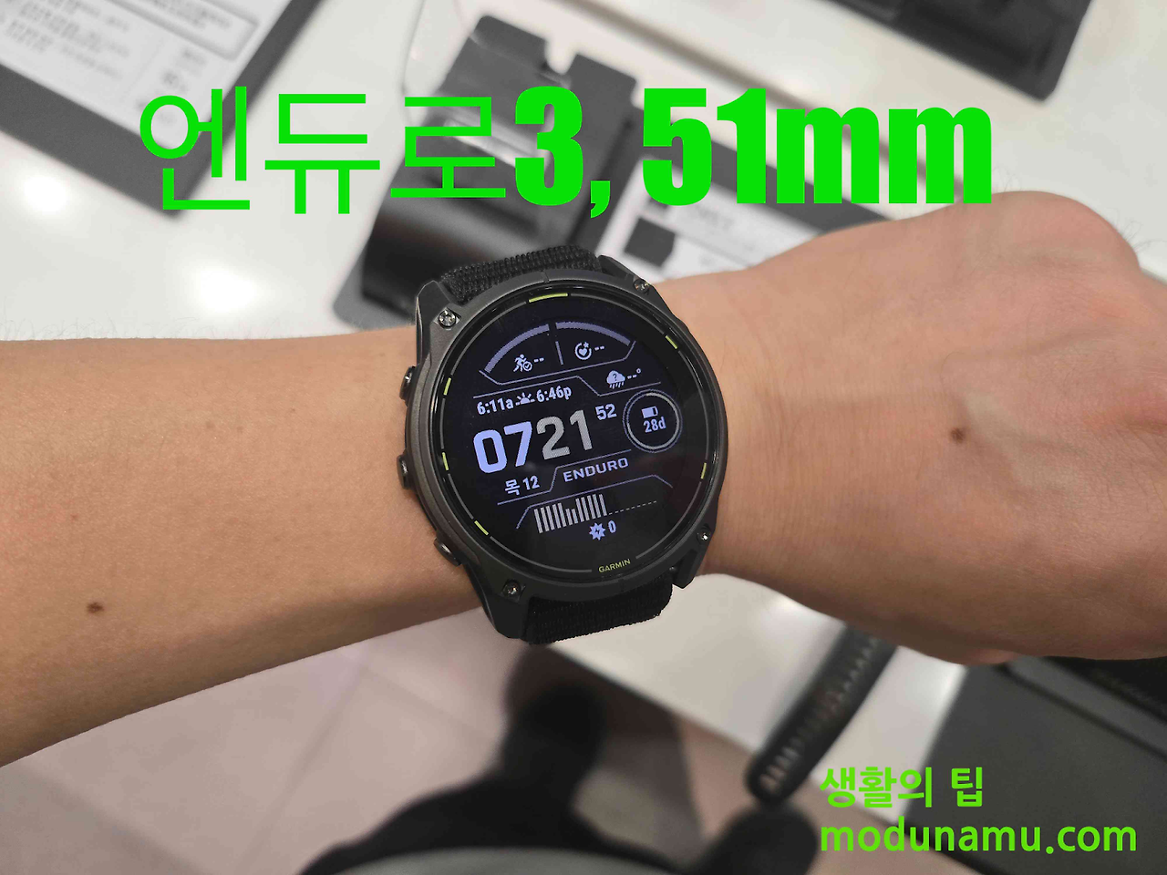 작년 9월쯤 가민에서 피닉스 8과 엔듀로 3 모델이 출시되어, 일단 매장에서 시착해 보게 되었어요.