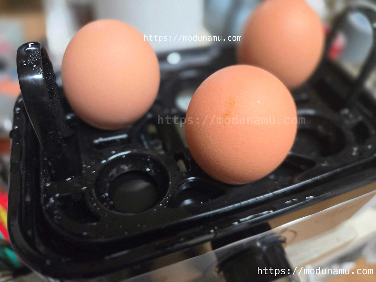 - 계란은 뾰족한 부분이 밑으로 가도록 올려놓기