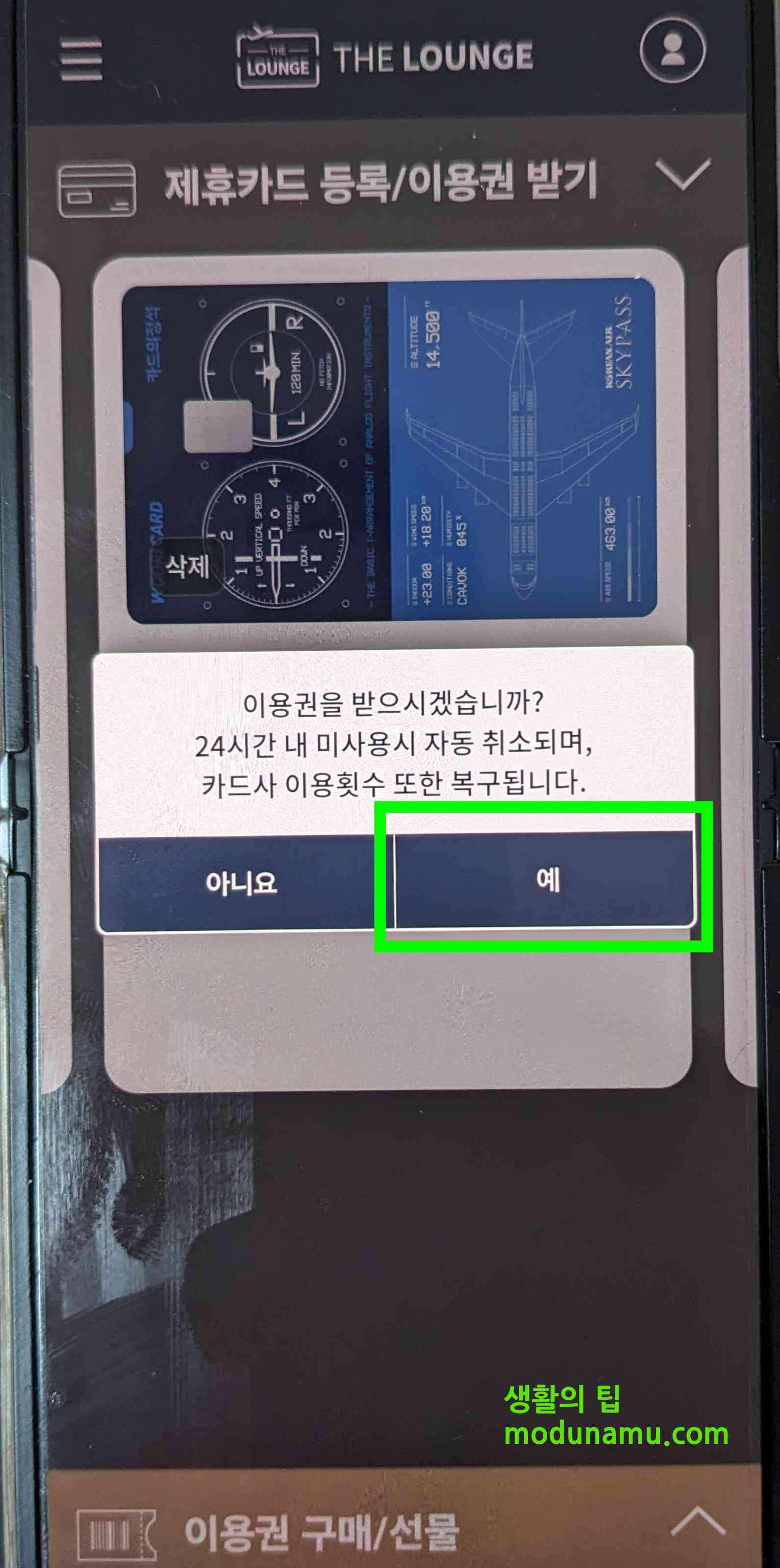 자, 이제 카드실적도 채웠다면 라운지를 무료 입장권을 받아 보시죠.