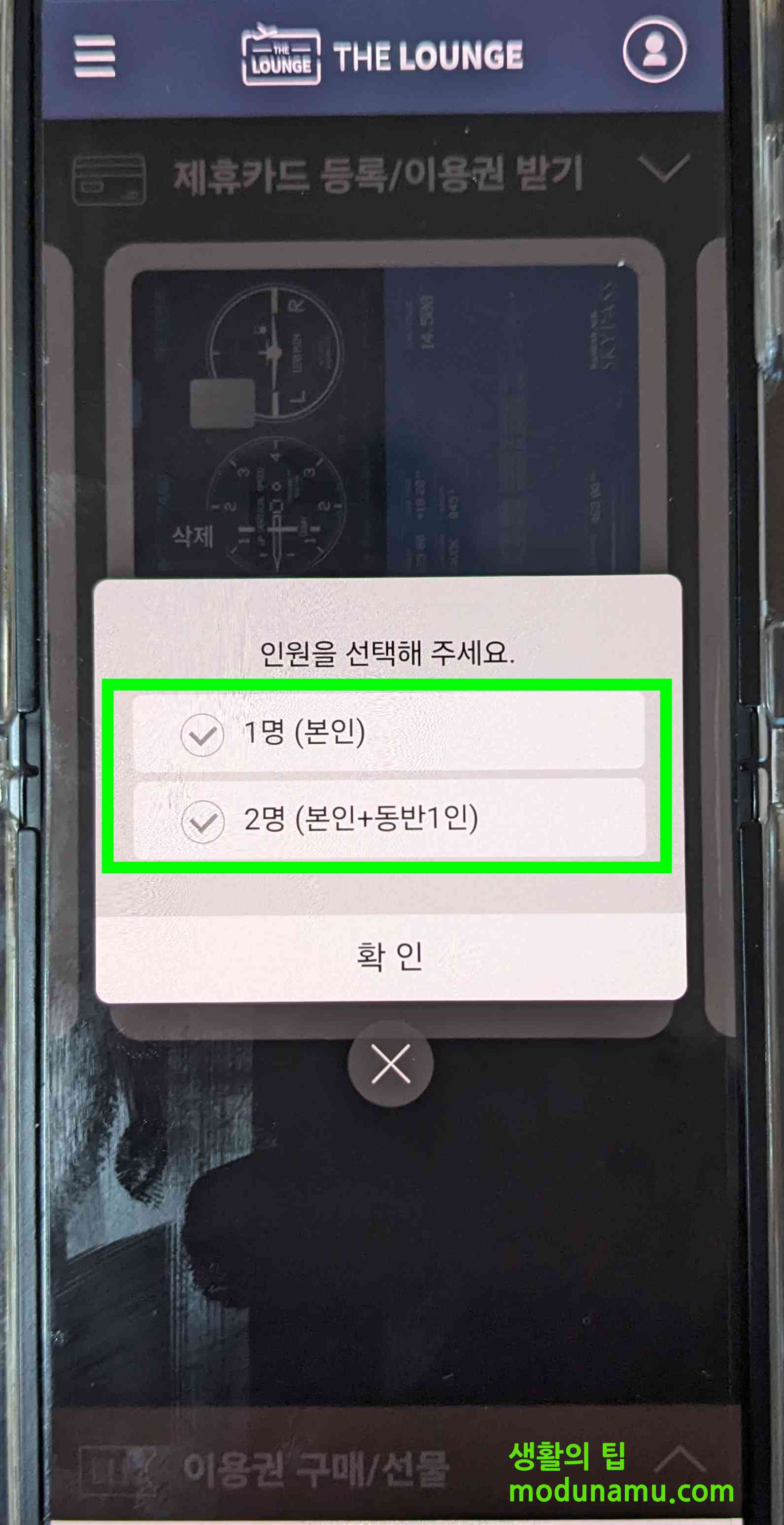보통 라운지 카드면 1년에 2회 정도는 본인만 입장 가능하죠.