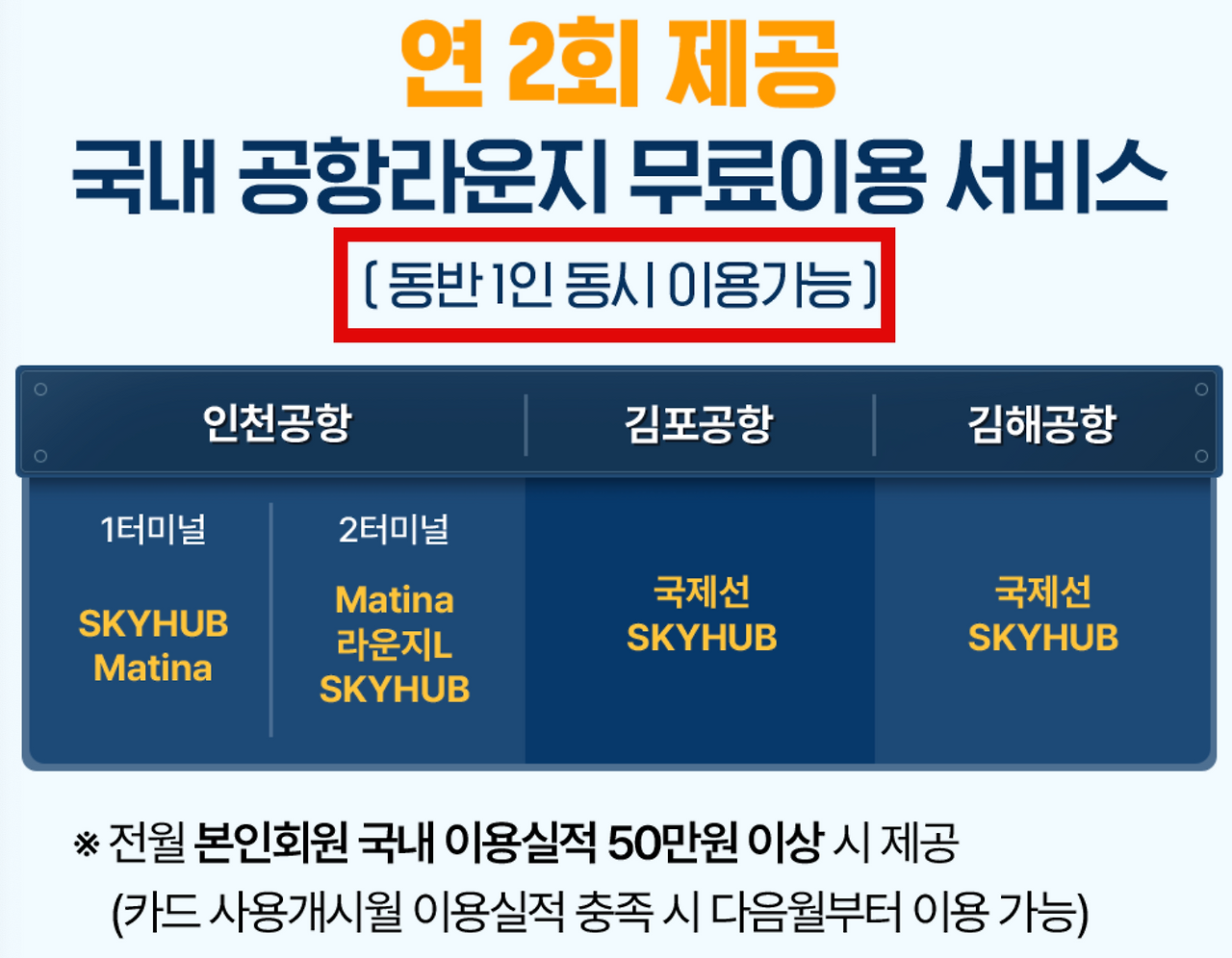보통 라운지 카드면 1년에 2회 정도는 본인만 입장 가능하죠.