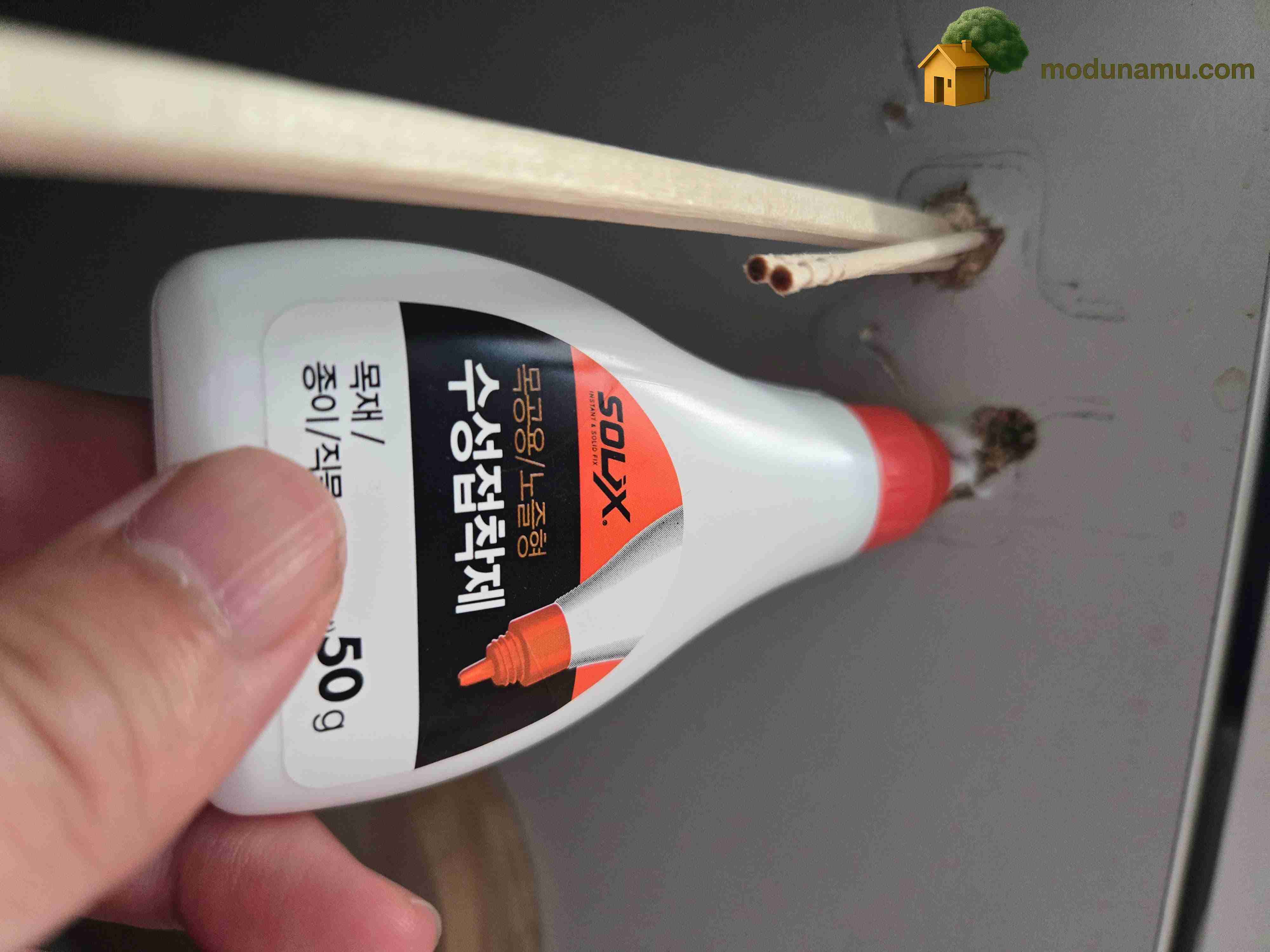 제가 시행착오를 겪은 건 구멍을 완전히 메꾸고 목공용 본드로 고정까지 시킨 게 패착 이었습니다.