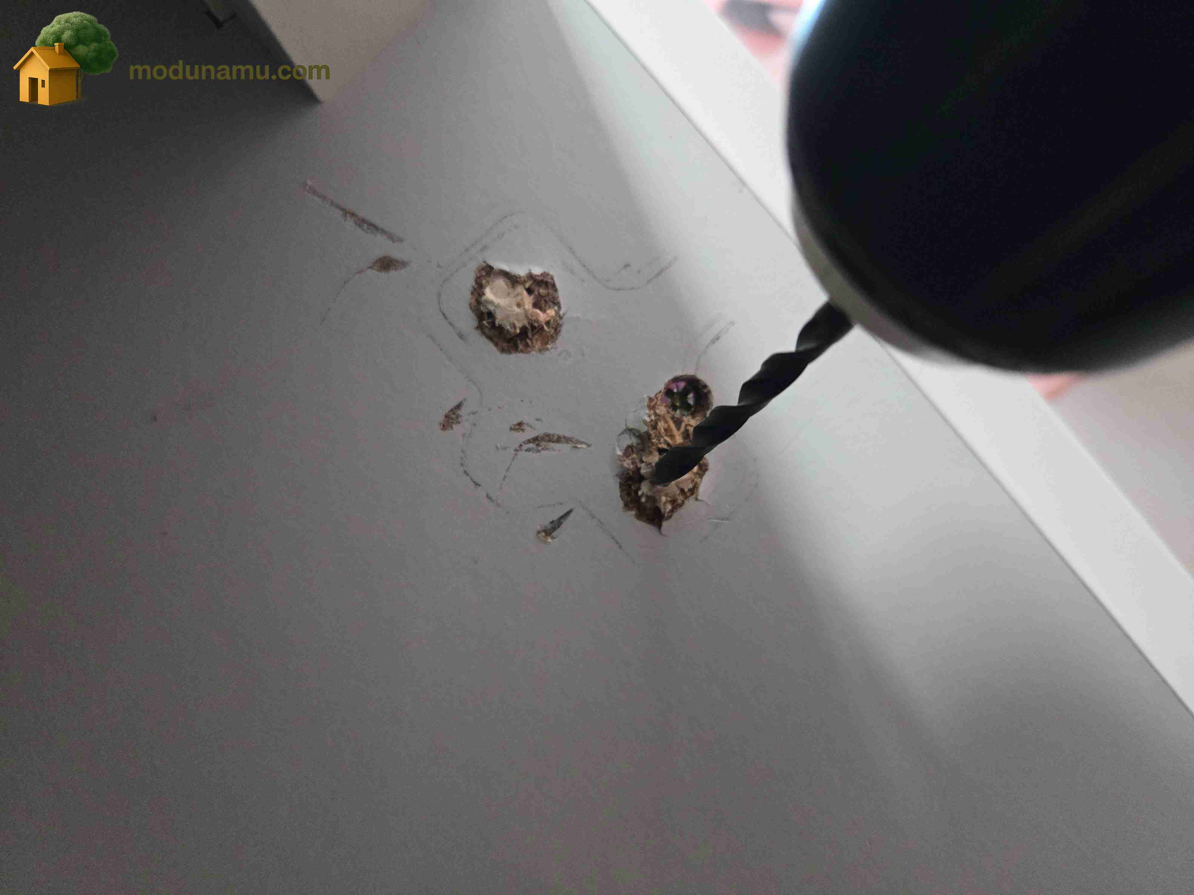 너무 단단하게 고정돼서 나사가 안 들어갑니다. 결국 드릴로 나사 길을 만들어 줬어요.