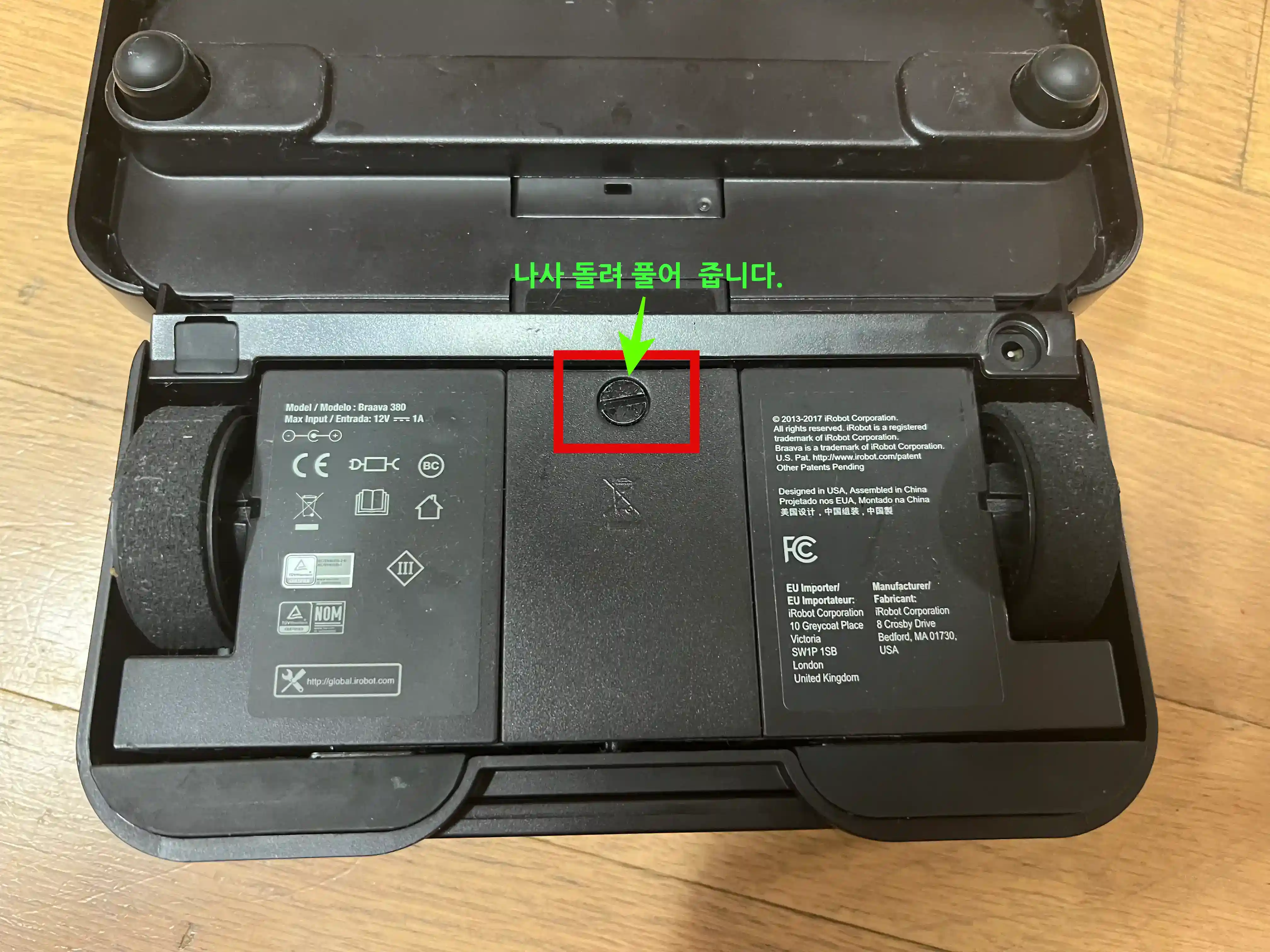 1. 브라바 380t를 뒤집어서 드라이브로 나사를 풀어 줍니다.