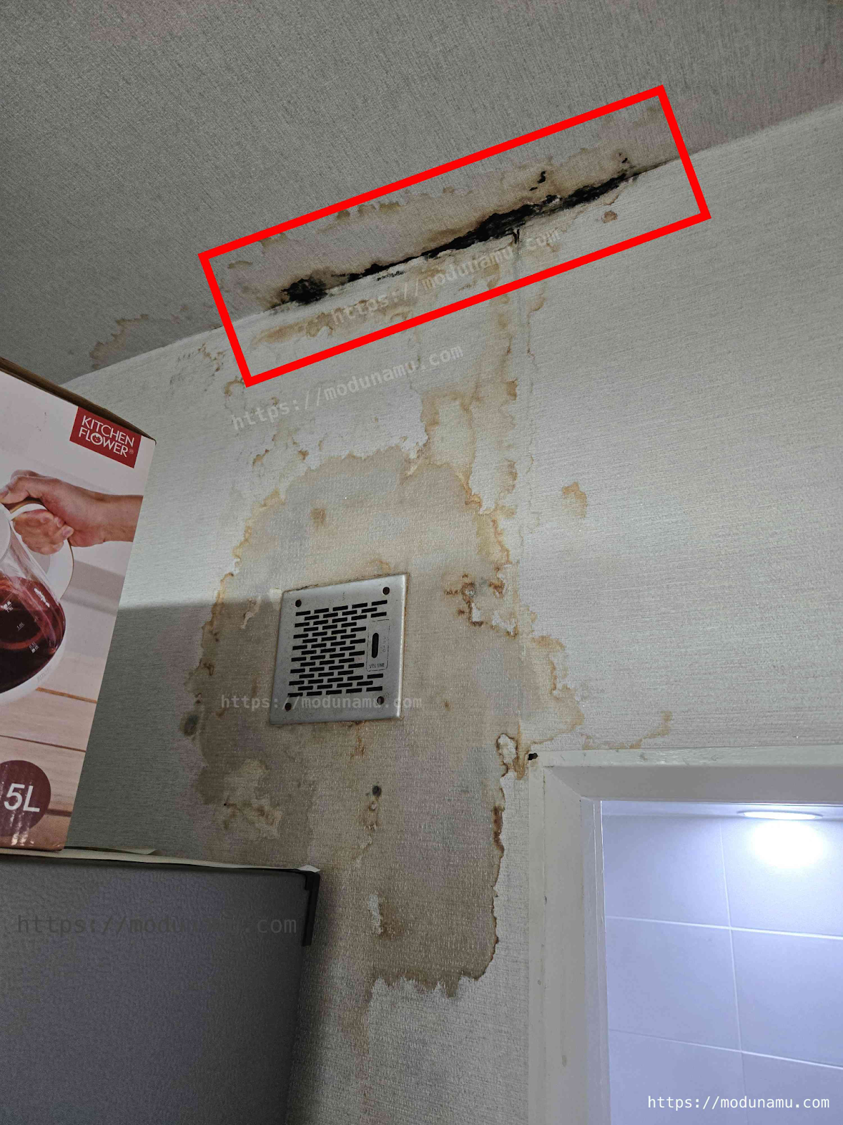 아래집을 방문해 보니, 누수가 생겨서 곰팡이까지 생긴걸 확인하고 최대한 빨리 수리해 주기로 했습니다.