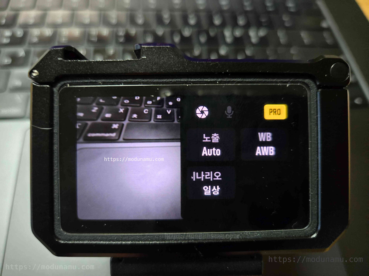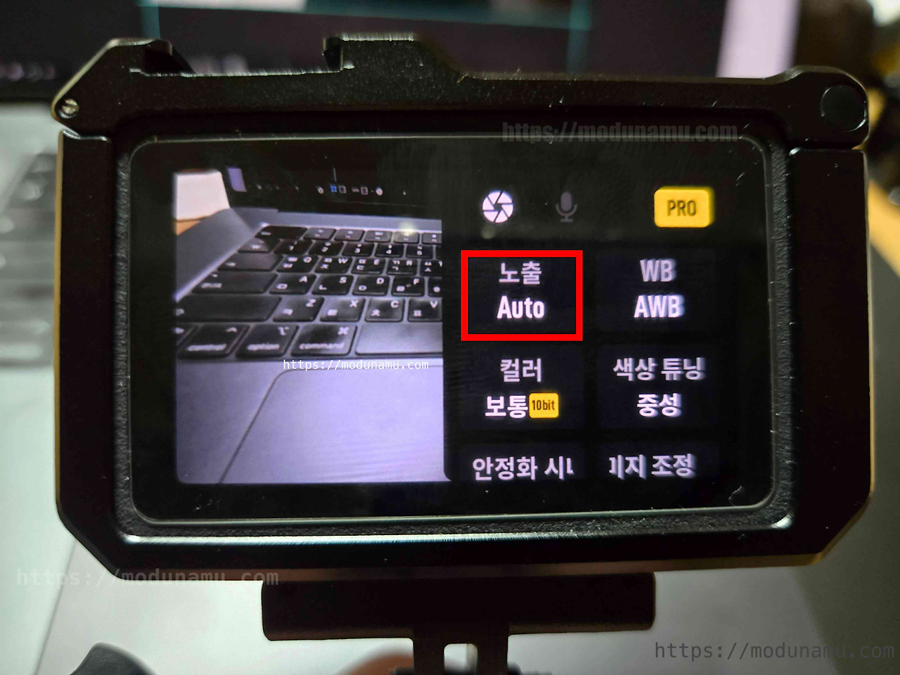 메인 : 오른쪽 가운데 제어판 터치 > 우측 상단 PRO 터치 > 노출 터치