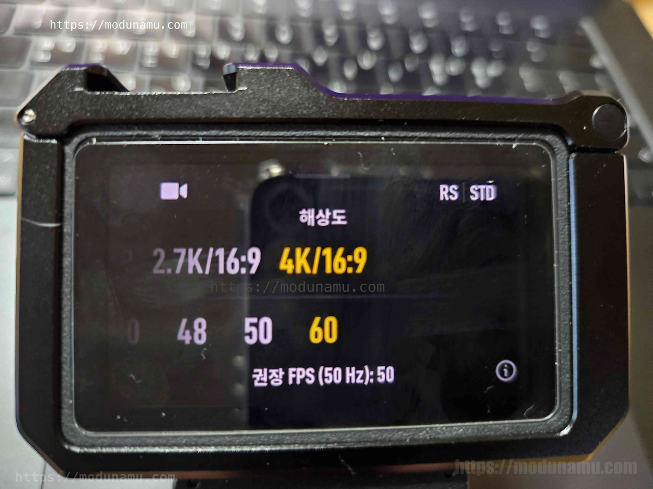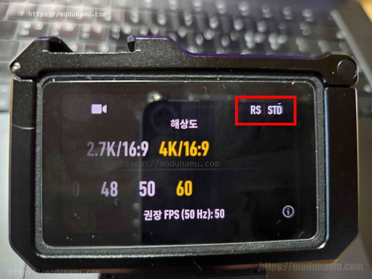 메인 : 동영상 모드 > 우측상단 RS STD 터치