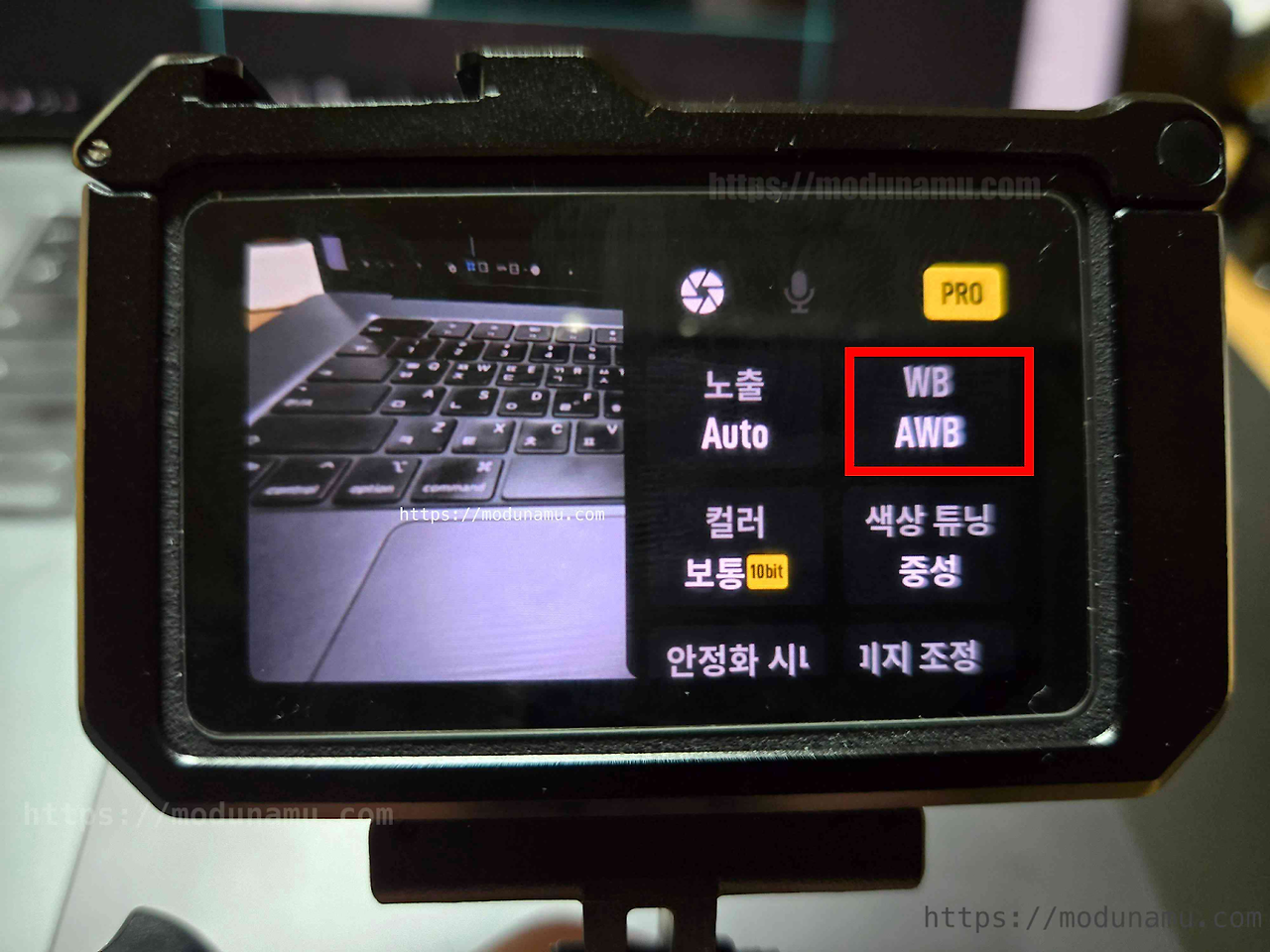 메인 : 오른쪽 가운데 제어판 터치 > 우측 상단 PRO 터치 > WB 터치