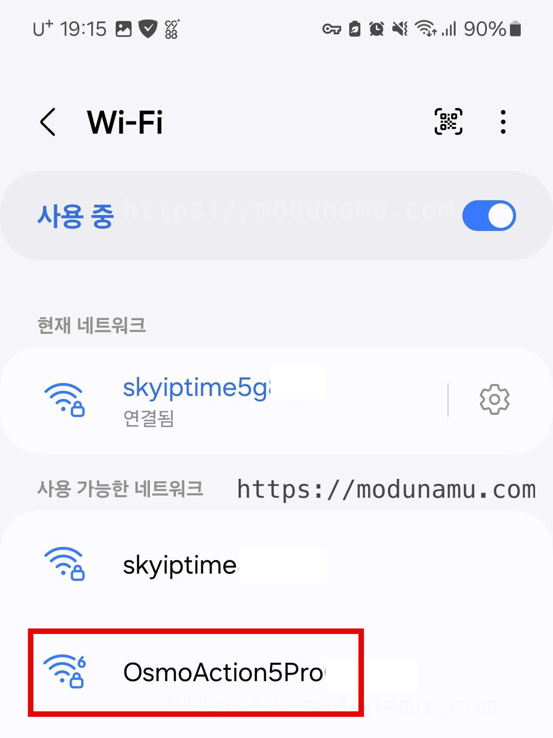 1. Wi-Fi에서 오즈모 액션 5 삭제