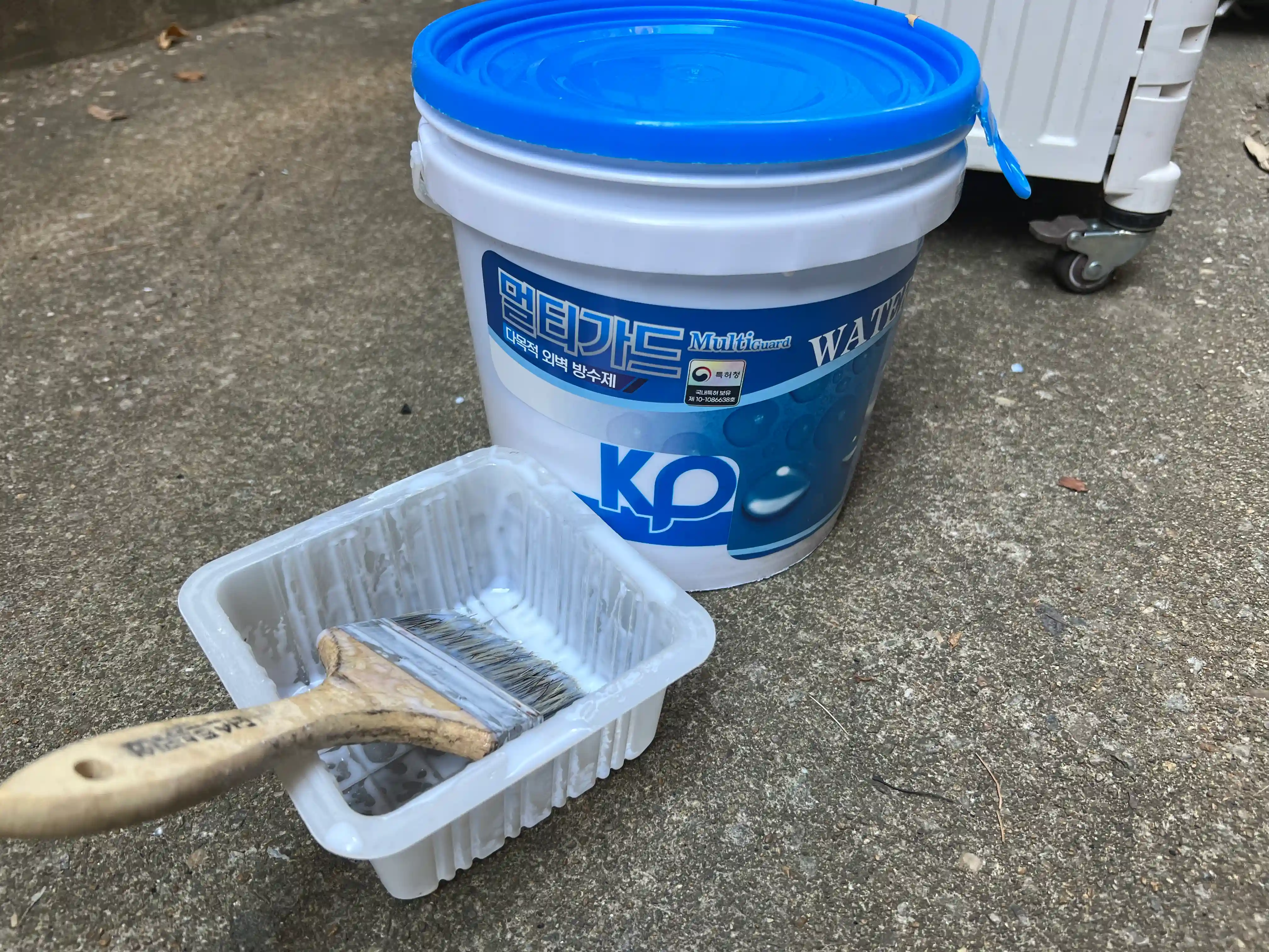 - 페인트 붓으로 구석구석 메지 사이 틈에 얇게 펴서 발라 줍니다.(멀티가드 도포)