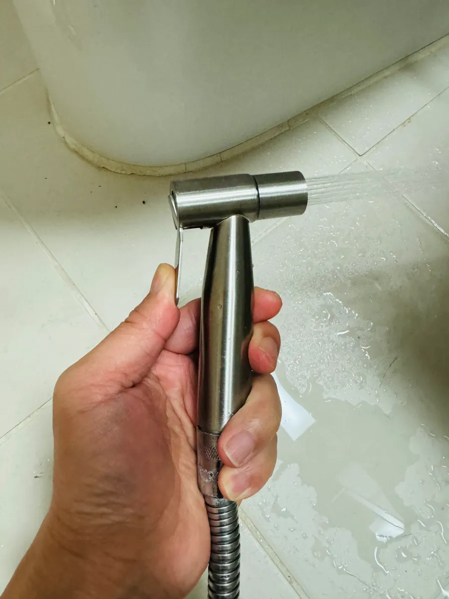 아침에 보니 욕실 바닥에 물이 마르지 않고 흥건히 흐르고 있었어요. 원인은 변기 옆에 있는 스프레이건 때문입니다. 다행히 어디 누수가 생긴 건 아니어서 다행이었어요. 저렴한 걸로 사서 1년 전에 교체했는데, 사진처럼 헤드 부분이 깨져서 물이 세고 있었어요.