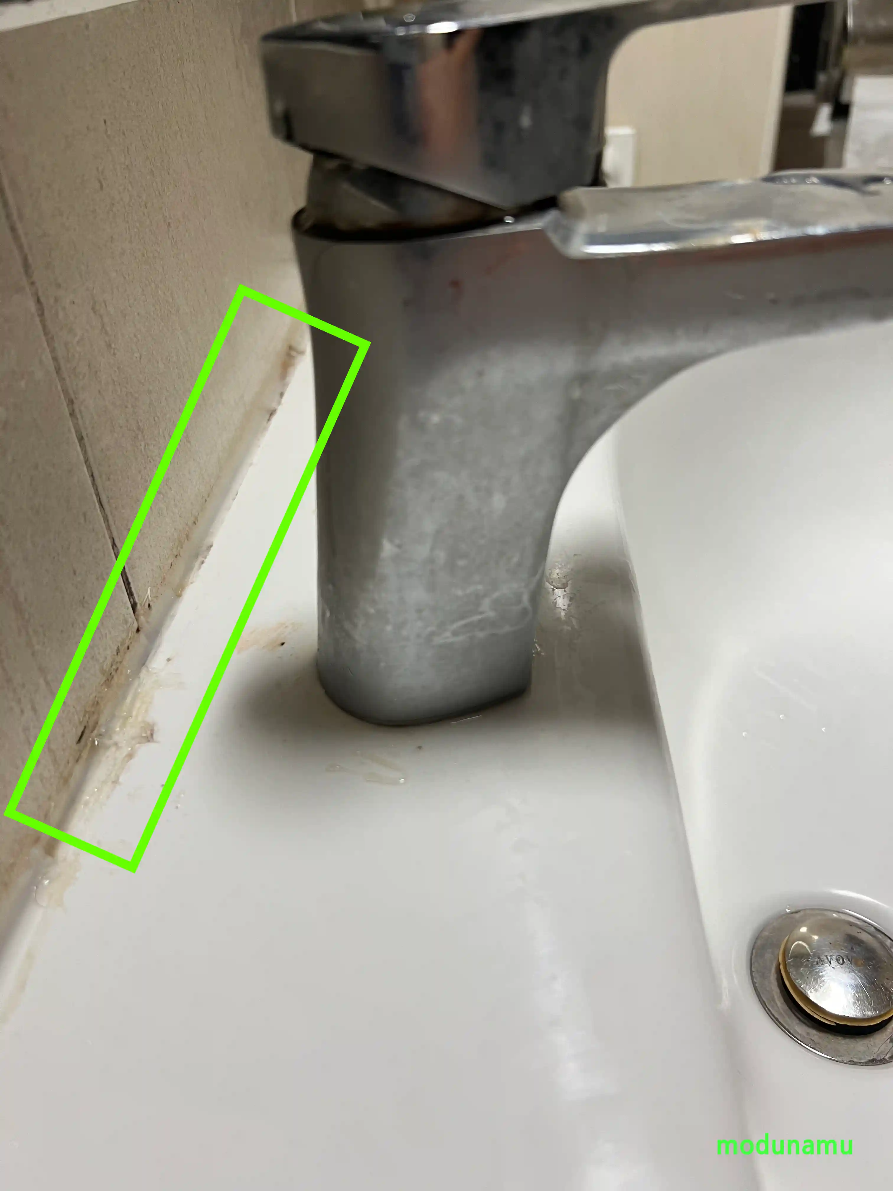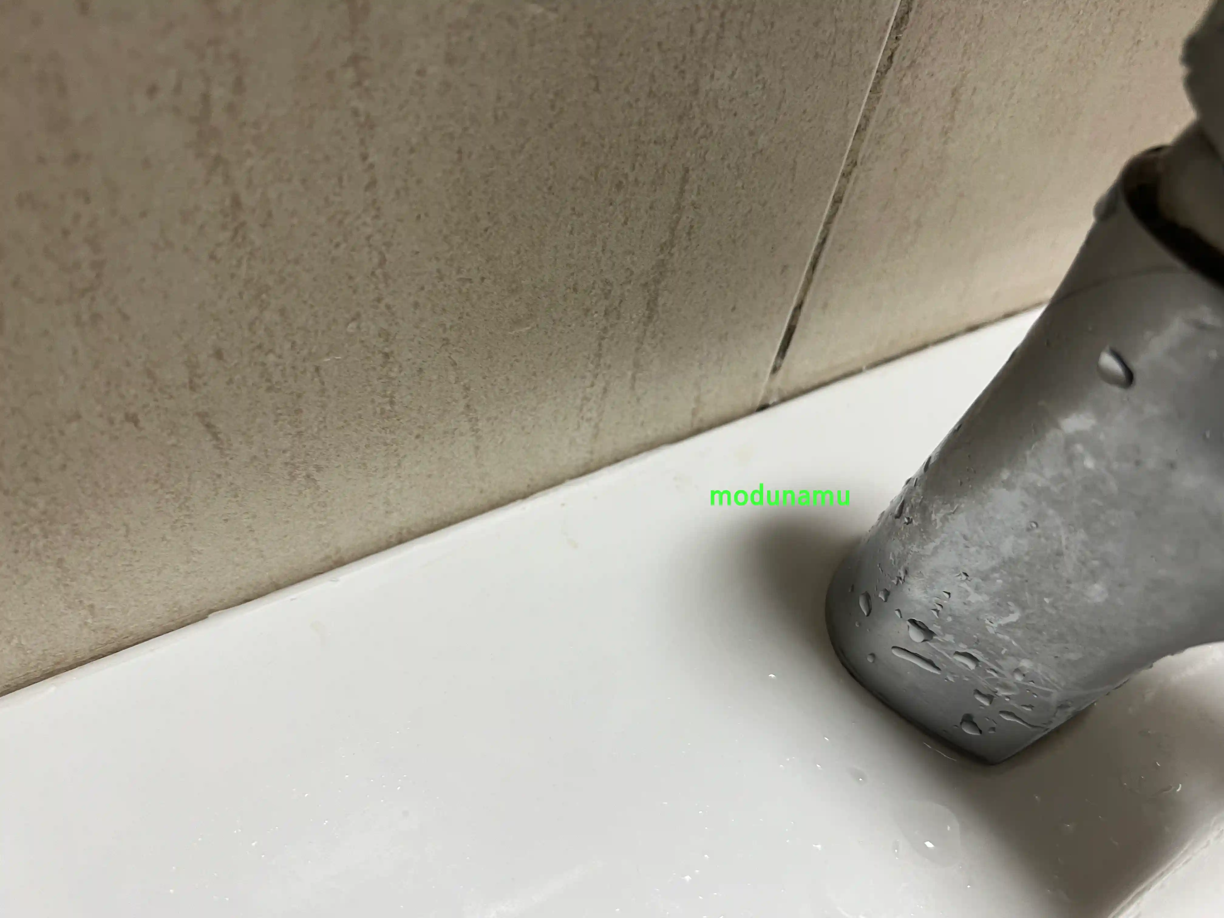 오래되면 어쩔 수 없이 곰팡이가 생깁니다. 특히 상시 물이 닿는 욕실과 부엌이라 더한 거 같습니다. 몇 번 곰팡이 제거하다가 오래되다 보니 탄력도 떨어 지는거 같아서 재시공 하게 되었습니다.
