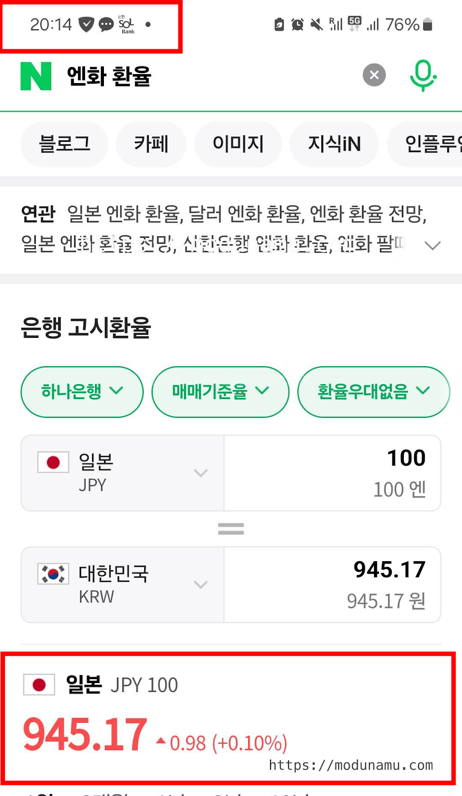 편의점에서 현금을 출금하고 나와서 네이버로 환율을 확인해 보았습니다. 20시 14분 기준으로 945.17원으로 확인하였습니다.