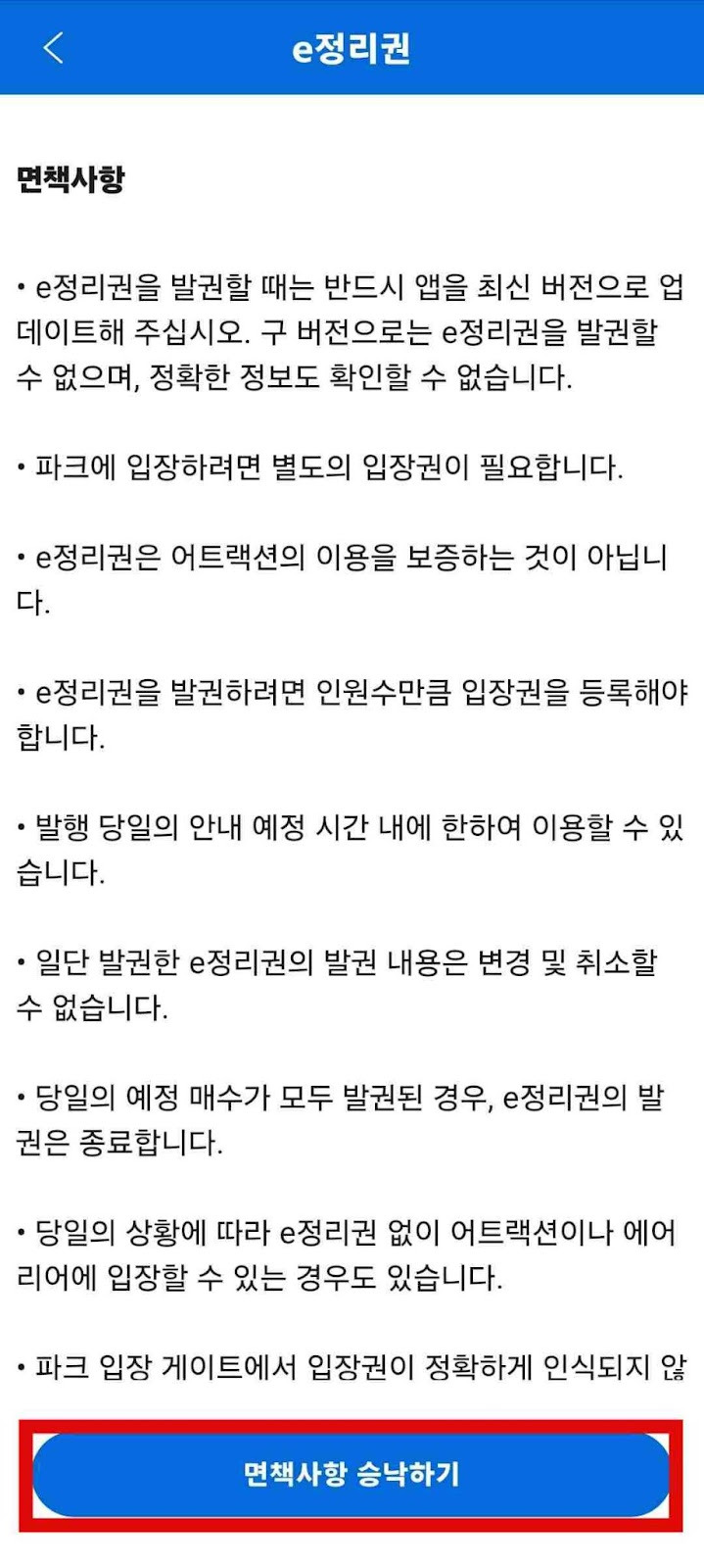 홈화면 : e 정리권 -> 입장권 등록하기 -> 면책권 승인 -> 라이브러리에서 불러와서 선택 -> 권한 허용 -> 입장권 별로 별칭 추가