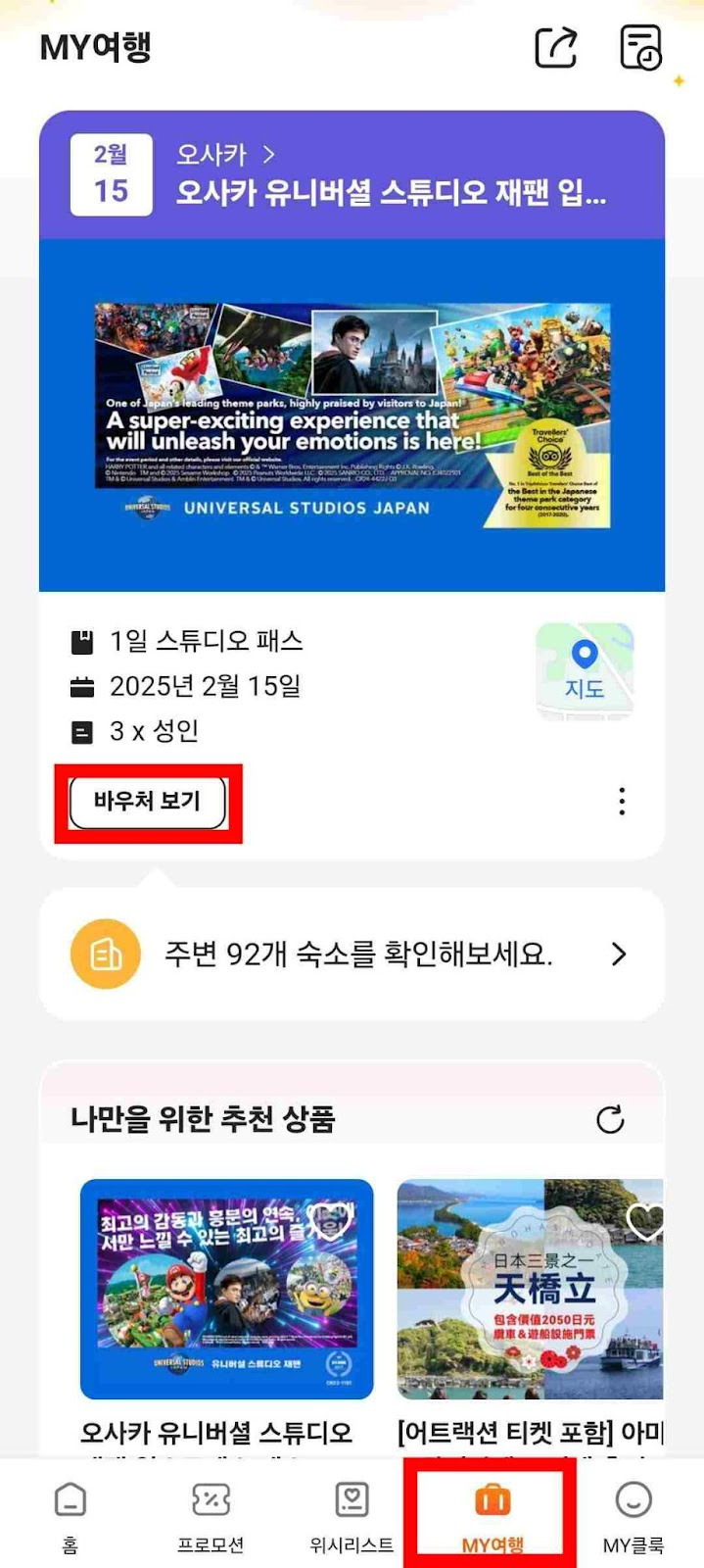 ‘MY여행’ 클릭 → ‘바우처 보기’를 선택합니다.