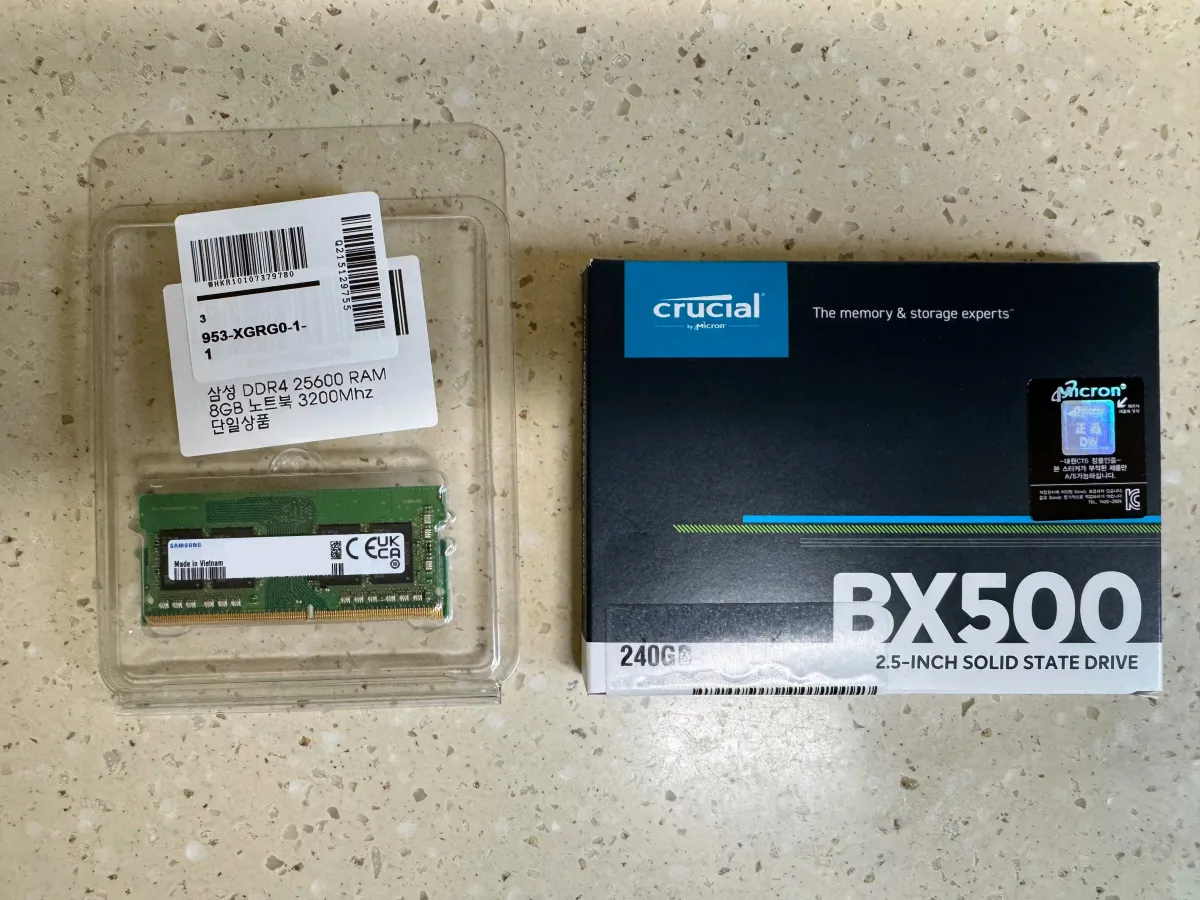기본 메모리가 8기가라서 8기가 추가하여 16기가로 증설하고 디스크도 256기가에서 240기가 SSD를 추가하여 496기가로 업그레이드 하면서 공부한 내용을 남깁니다.